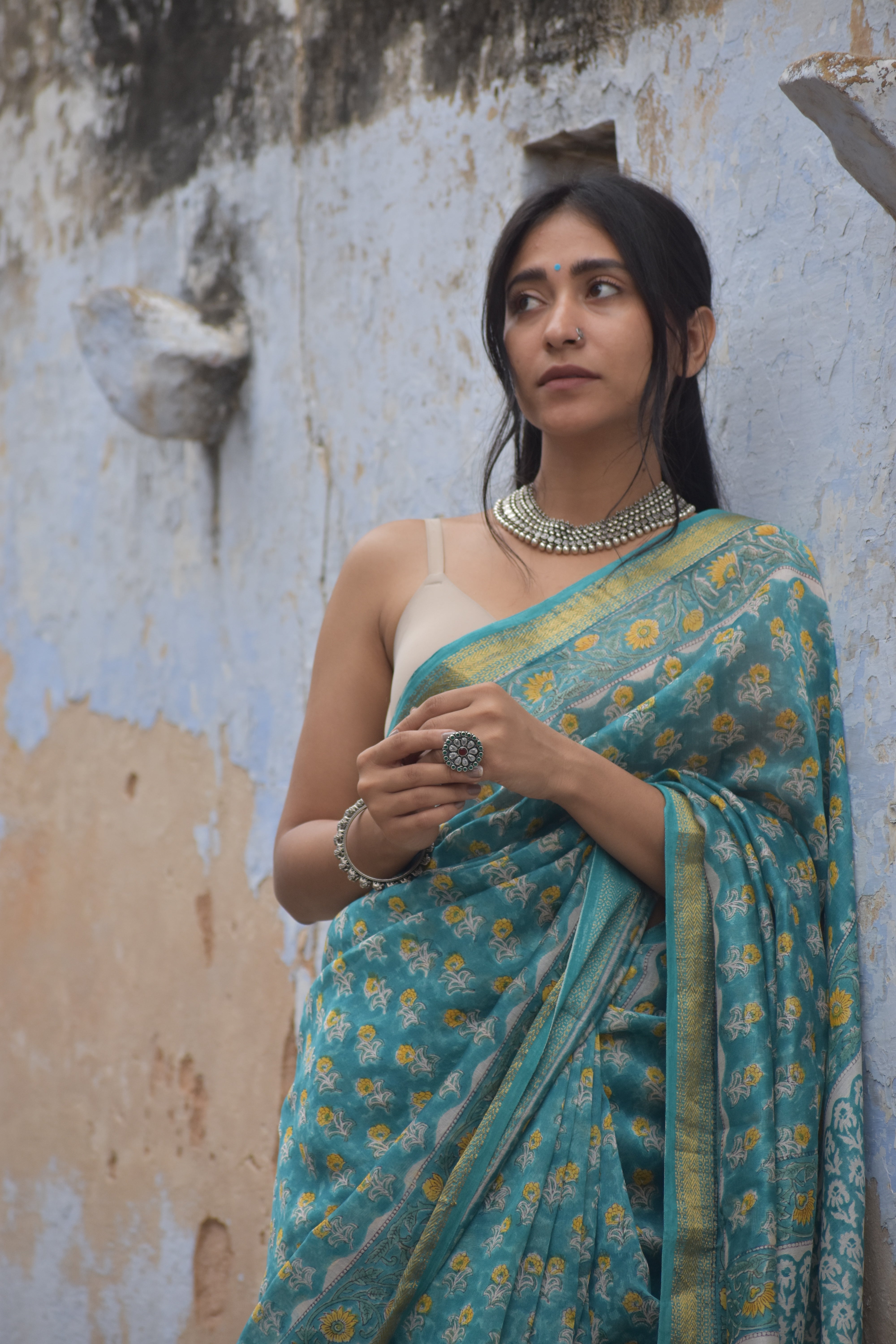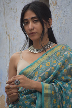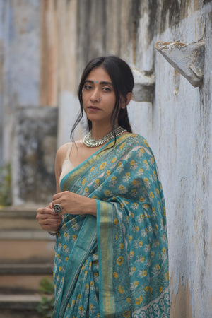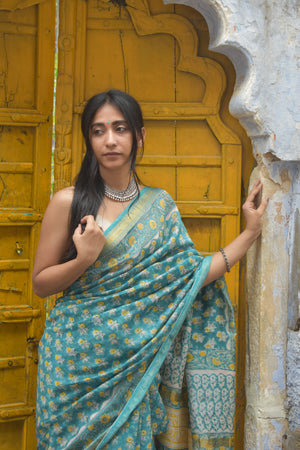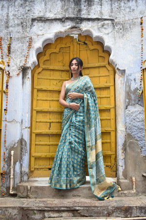 Embrace elegance with the Aparajita Saree, a masterpiece of Maheshwari craftsmanship. Woven from the finest cotton silk, this saree exudes timeless charm with its intricate zari motifs that shimmer delicately against a backdrop of rich, vibrant colors. Perfect for any occasion, the Aparajita Saree combines traditional artistry with contemporary flair, making it a must-have in every discerning wardrobe.