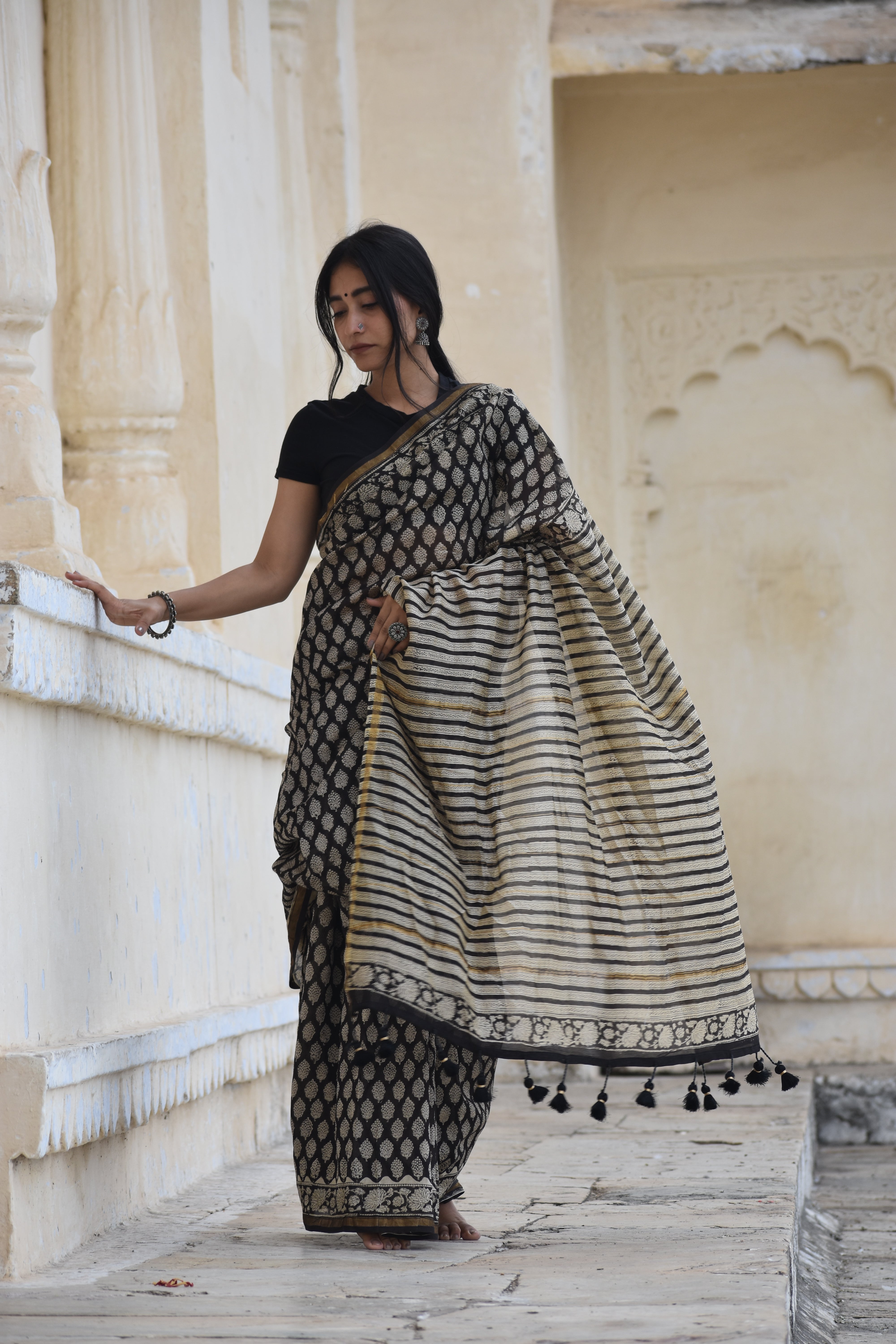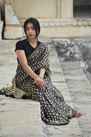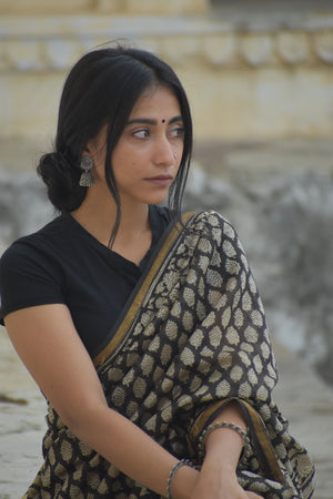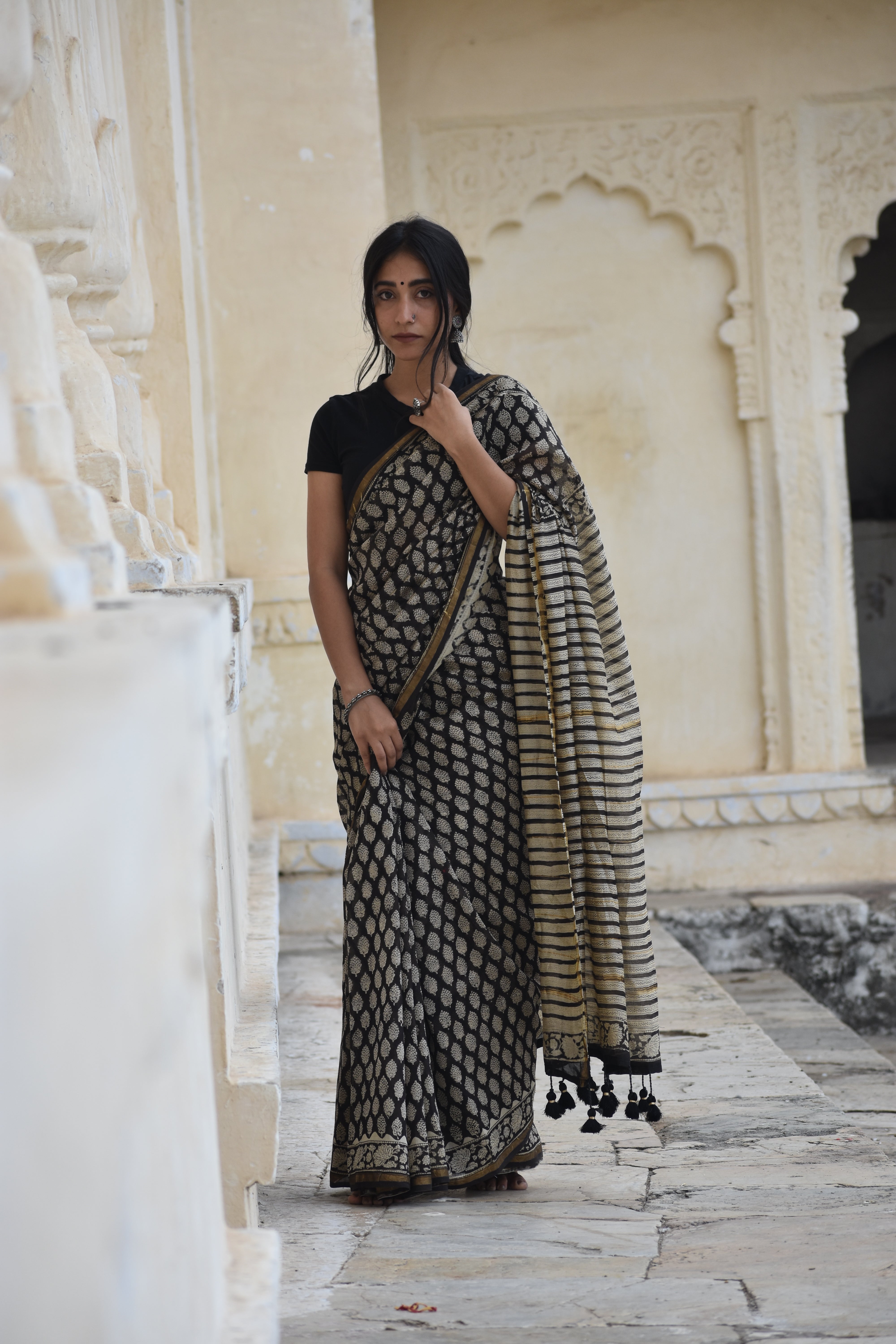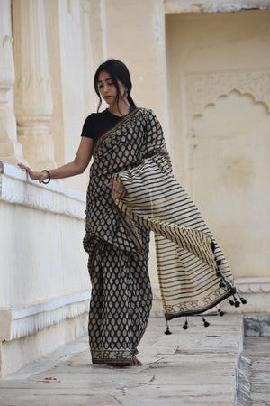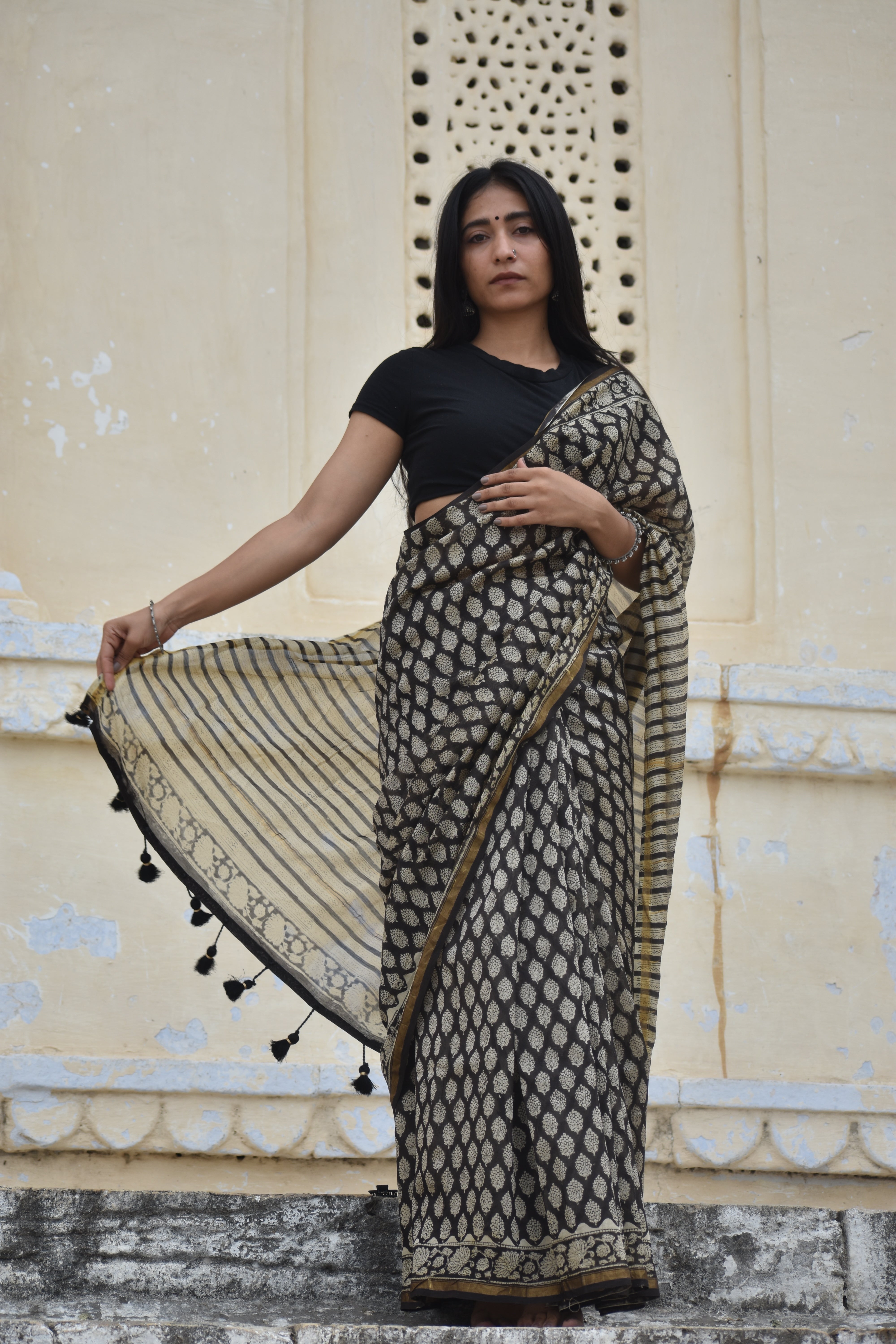 Embrace elegance with the Raatrani Saree, a tribute to timeless beauty and allure. Made from the finest Chanderi cotton silk, this saree showcases intricate Raatrani flower motifs woven with meticulous craftsmanship and adorned with shimmering zari accents. Whether worn at weddings or festive gatherings, the Raatrani Saree promises to elevate your style with its ethereal charm and luxurious drape.