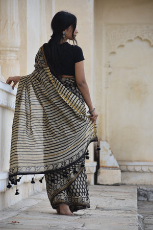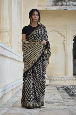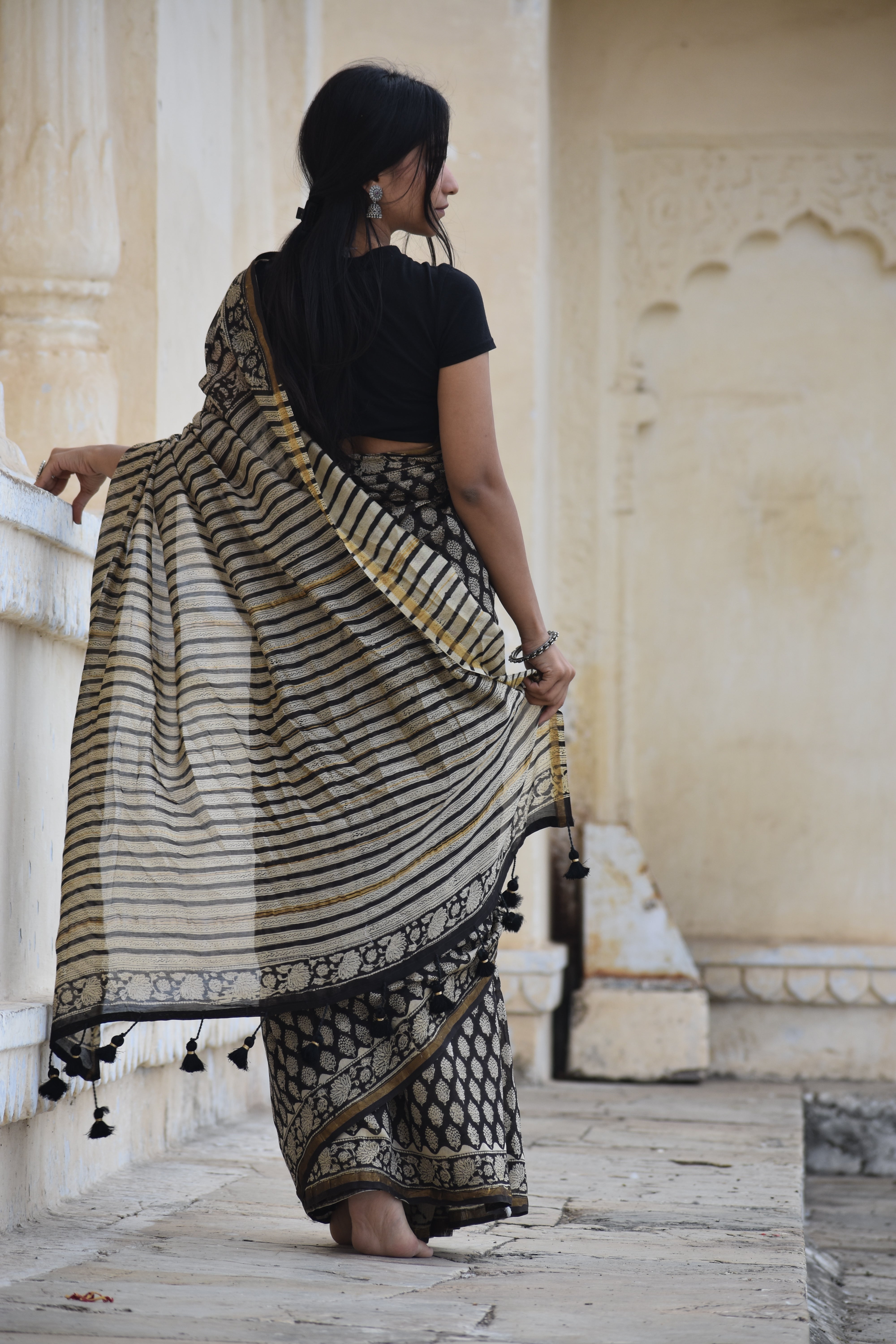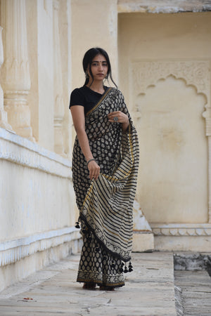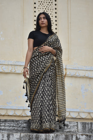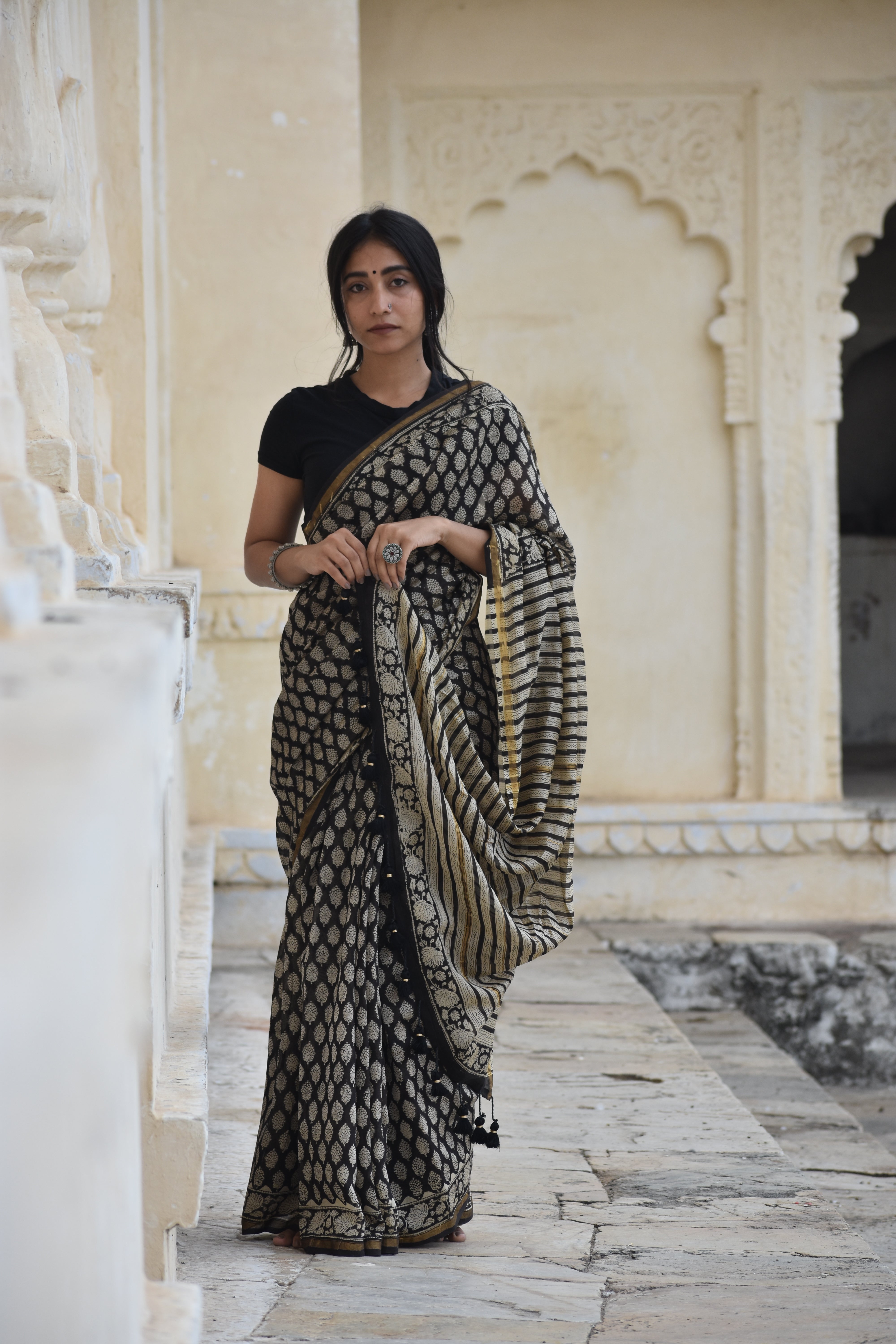 Embrace elegance with the Raatrani Saree, a tribute to timeless beauty and allure. Made from the finest Chanderi cotton silk, this saree showcases intricate Raatrani flower motifs woven with meticulous craftsmanship and adorned with shimmering zari accents. Whether worn at weddings or festive gatherings, the Raatrani Saree promises to elevate your style with its ethereal charm and luxurious drape.